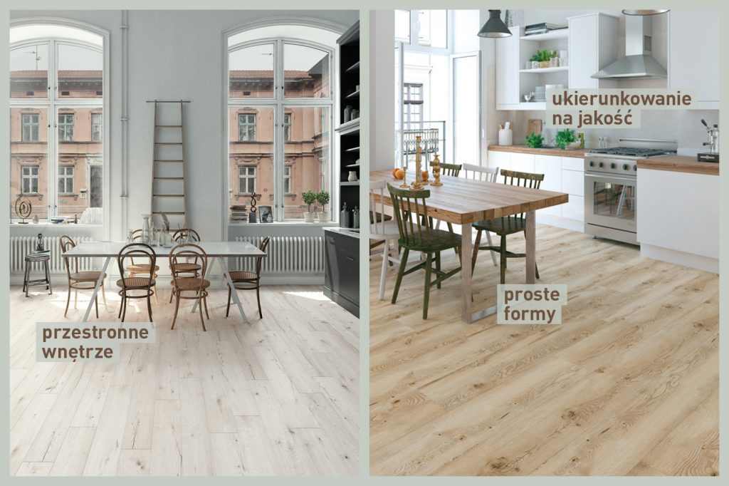 W minimalistycznych wnętrzach powinna dominować jasna kolorystyka – przede wszystkim biel, wzbogacona o delikatne tony beżu czy szarości. Zastosuj je przede wszystkim na ścianach i podłogach (sięgnij np. po panele Dąb Lagun z kolekcji Ambience 4V). Inne kolory mogą pojawić się w akcentach. Pamiętaj jednak, by były one stonowane, a nie krzykliwe – świetnie sprawdzi się np. subtelny błękit, przygaszona zieleń czy pudrowy róż. Mile widziana jest również czerń, która w połączeniu z bielą tworzy ponadczasowy duet.